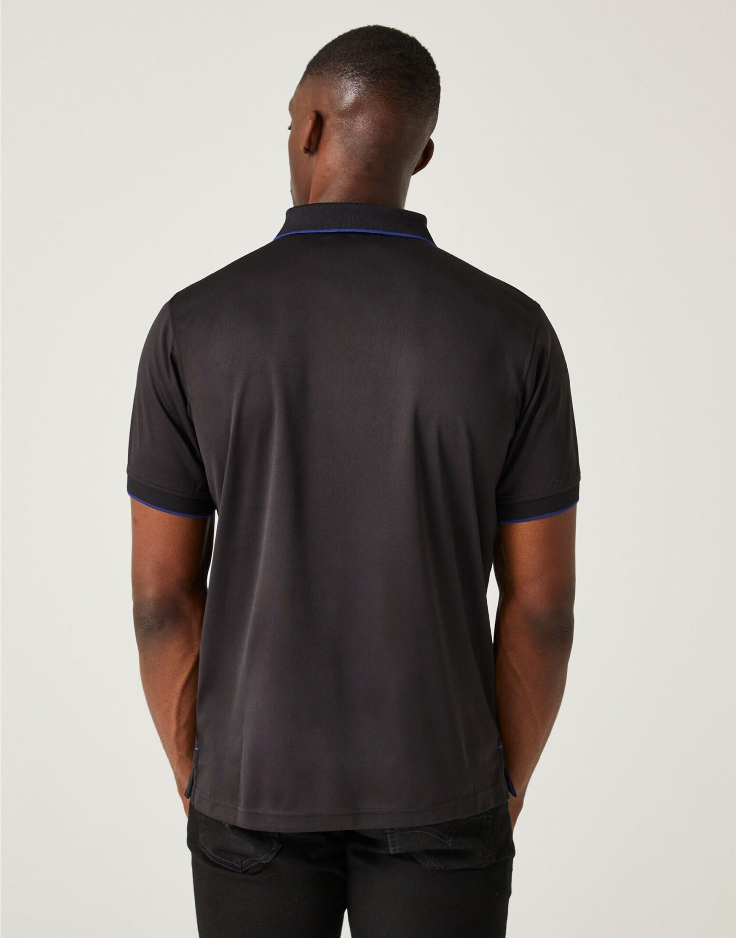 - Contrast tipping on collar and cuffs