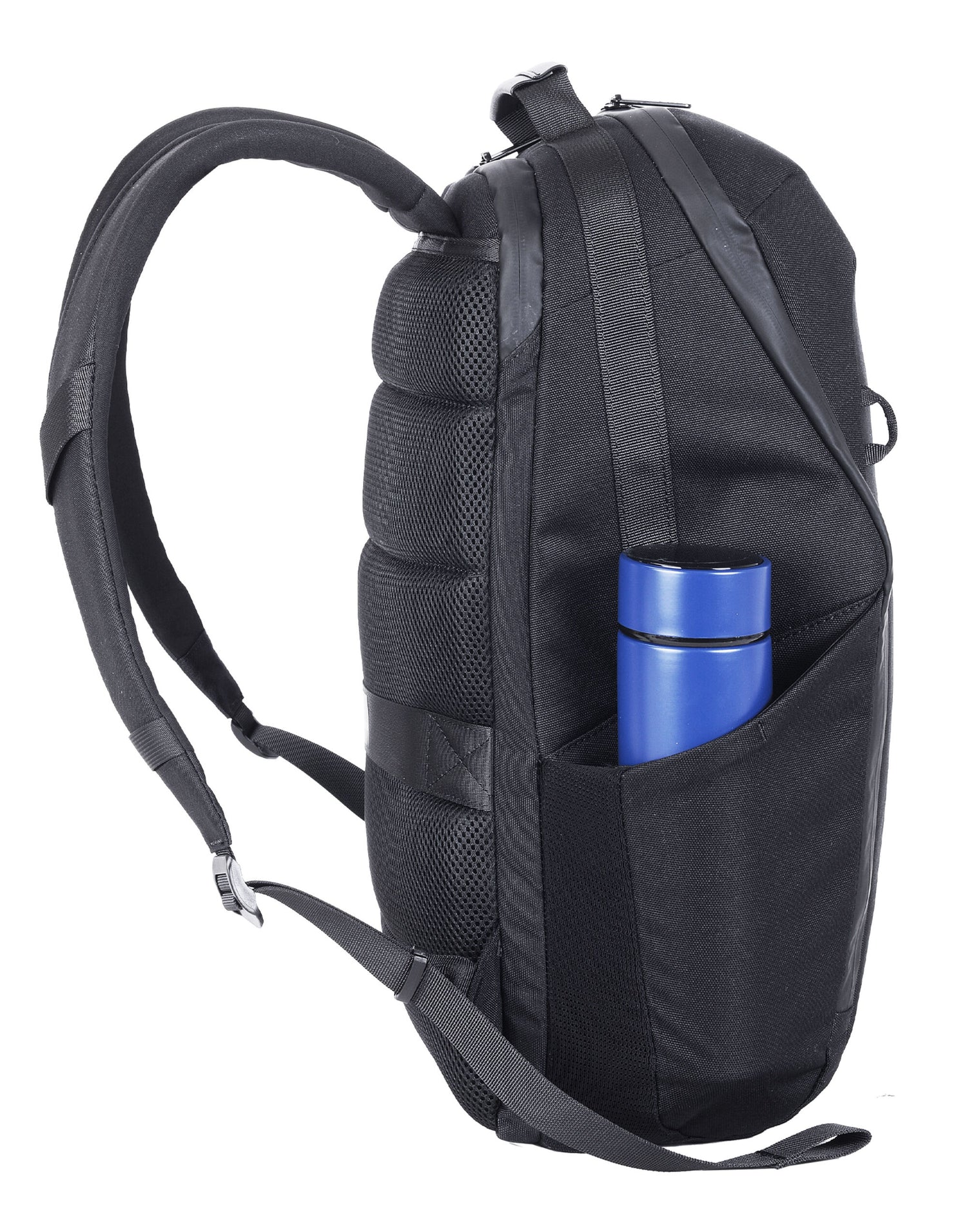 - Padded back made of sweat wicking mesh with trolley sleeve