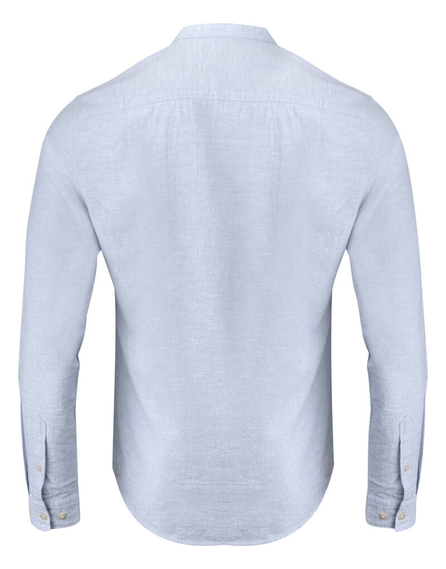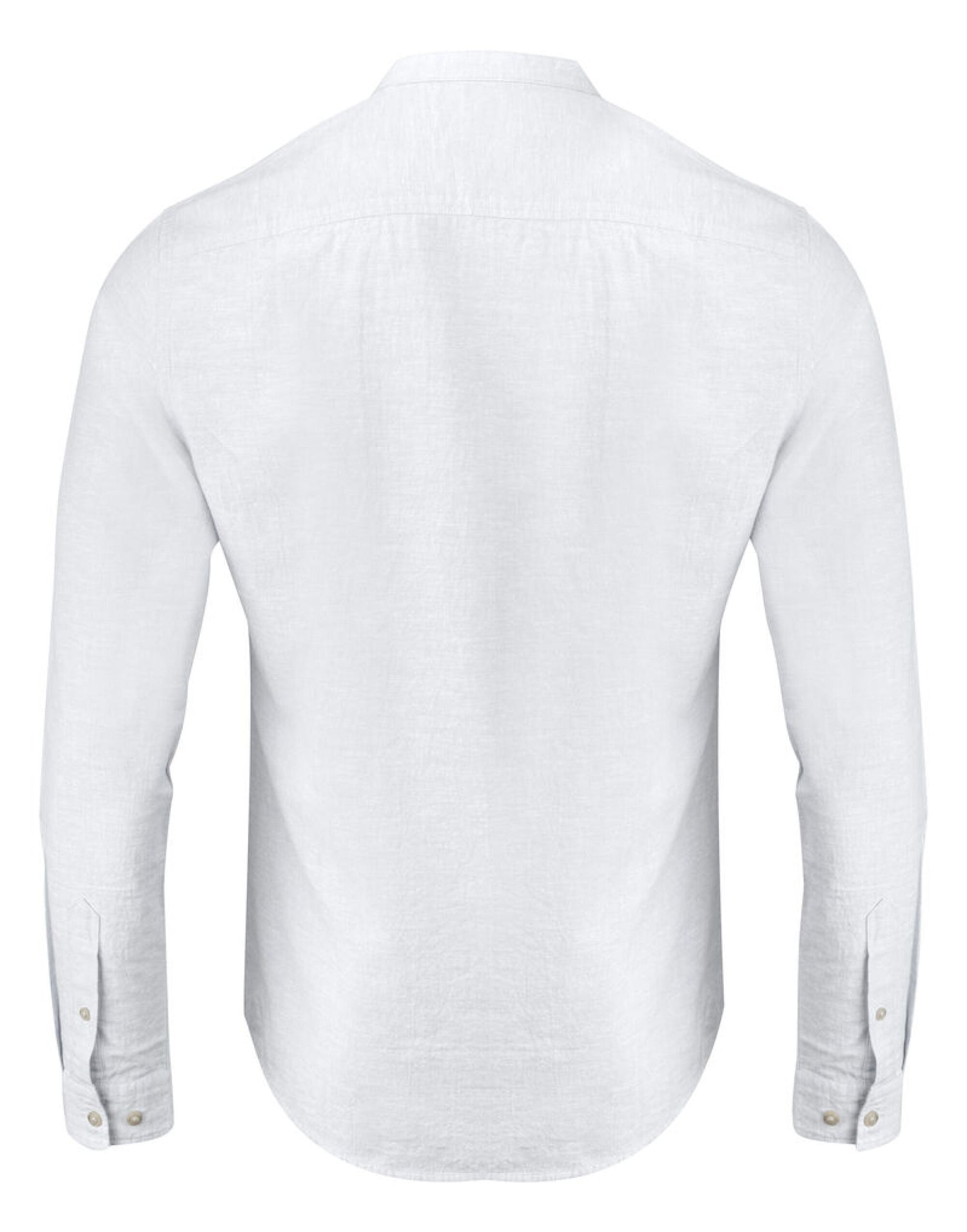 - Linen-blend shirt with Mao collar and adjustable sleeve cuffs